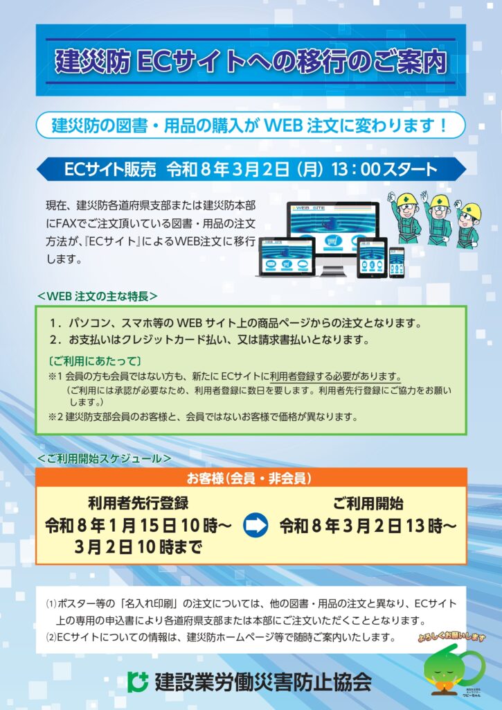 3月2日より建災防の安全用品の購入サイト「ECサイト」が運用を開始します。